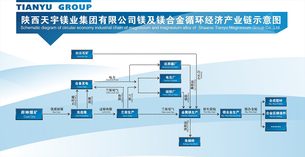 陜西天宇鎂業(yè)集團有限公司是一家以蘭炭生產(chǎn)為基礎(chǔ)產(chǎn)業(yè),鎂及鎂合金生產(chǎn)為主導(dǎo)產(chǎn)業(yè),并涉足冶金化工、物流開發(fā)、電子商務(wù)、酒店經(jīng)營等行業(yè)的資源綜合利用型循環(huán)經(jīng)濟企業(yè)集團。旗下有七家獨資公司、六家合資公司,年總營業(yè)收入超過20億元。